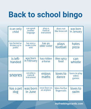 To build your bingo sheet for this ice breaker game you will need 24 unique questions.