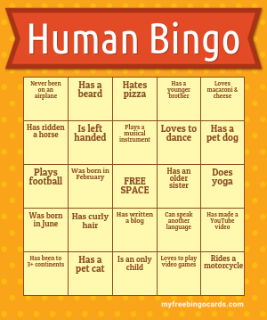 Free Printable And Virtual Human Bingo Cards And Games